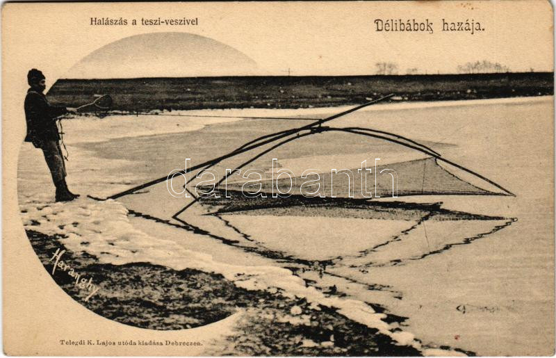 Hortobágy, Délibábok hazája, halászás a teszi-veszivel. Telegdi K. Laj... https://www.darabanth.com/de/444-Fernauktion/444.0/Ansichtskarten/Ungarn~2000005/Hortobagy-Delibabok-hazaja-halaszas-a-teszi-veszivel-Telegdi-K-Lajos-utoda-kiadasa-Hara~II2934697