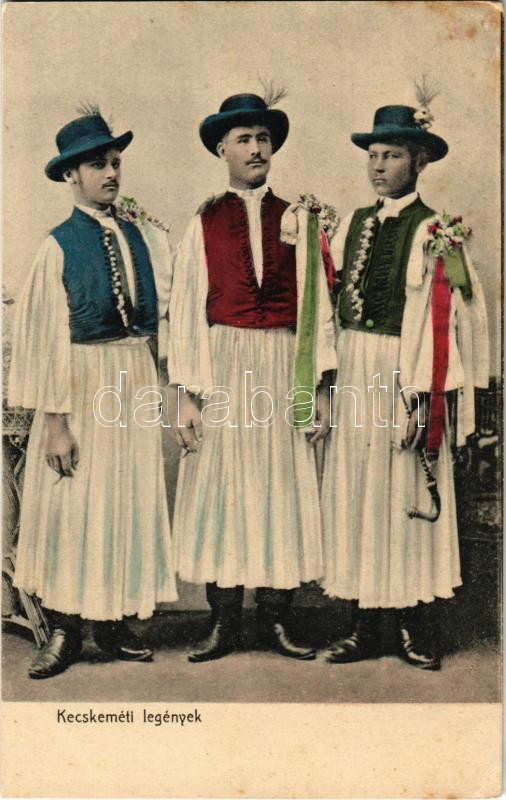 Kecskemét, Kecskeméti legények, magyar folklór (EK) https://www.darabanth.com/de/444-Fernauktion/444.0/Ansichtskarten/Ungarn~2000005/Kecskemet-Kecskemeti-legenyek-magyar-folklor-EK~II2926251