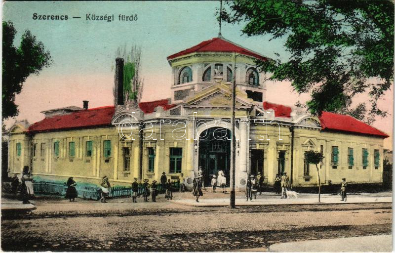 Szerencs, Községi fürdő. Vasúti levelezőlapárusítás 3082. https://www.darabanth.com/de/444-Fernauktion/444.0/Ansichtskarten/Ungarn~2000005/Szerencs-Kozsegi-furdo-Vasuti-levelezolaparusitas-3082~II2925581