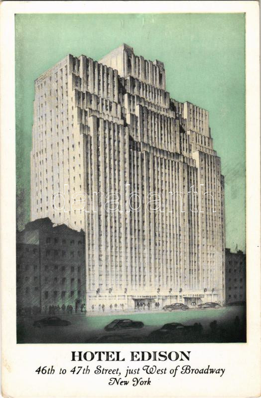 New York, Hotel Edison, 46th to 47th Street just West of Broadway https://www.darabanth.com/de/444-Fernauktion/444.0/Ansichtskarten/Vereinigte-Staaten-von-Amerika~2000027/New-York-Hotel-Edison-46th-to-47th-Street-just-West-of-Broadway~II2928381
