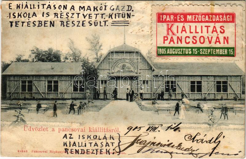 1905 Pancsova, Pancevo; Ipar és Mezőgazdasági Kiállítás, Mezőgazdasági csarnok. Pancsovai Népkonyha egylet kiadása / Exhibition, Agricultural hall (Rb)