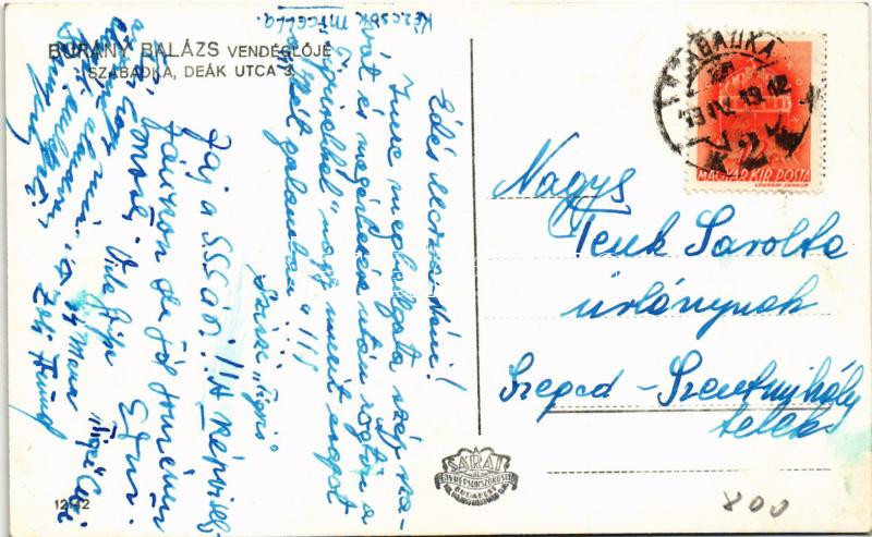 1943 Szabadka, Subotica; Bárány Balázs vendéglője, belső. Deák utca 3.... https://www.darabanth.com/de/444-Fernauktion/444.0/Ansichtskarten/Vojvodina~2000010/1943-Szabadka-Subotica-Barany-Balazs-vendegloje-belso-Deak-utca-3-restaurant-interior~II2727909