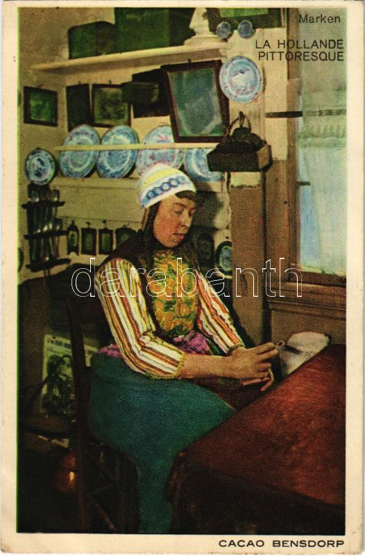 Beschreibung: Cacao Bensdorp. La Hollande Pittoresque / "The Queen of all Cocoas" Dutch cocoa advertisement postcard, folklore (EK)