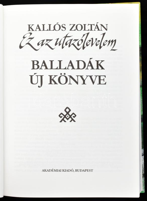 Kallós Zoltán: Ez az utazólevelem. Balladák új könyve. Bp., 1996, Akad... https://www.darabanth.com/de/444-Fernauktion/444.0/Bucher/Bucher-Andere-kuriositaten~1500027/Kallos-Zoltan-Ez-az-utazolevelem-Balladak-uj-konyve-Bp-1996-Akademiai-Kiado-Elso-kia~II2910166