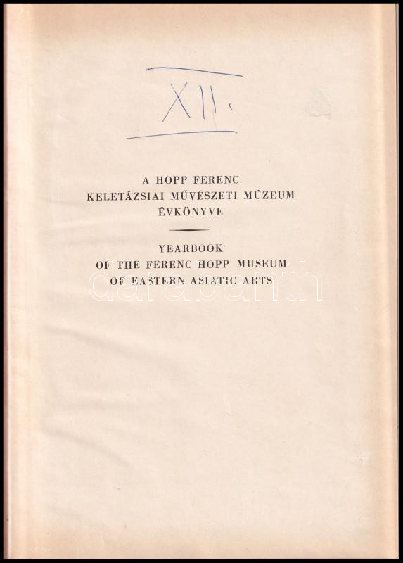 A Hopp Ferenc Keletázsiai Művészeti Múzeum évkönyve. / Yearbook of the Ferenc Hopp Museum of Eastern Asiatic Arts. Bp., é.n. (1970), NPI-ny. Fekete-fehér képekkel illusztrálva. Magyar, angol és francia nyelven. Átkötött félvászon-kötésben. Megjelent 1100 példányban.