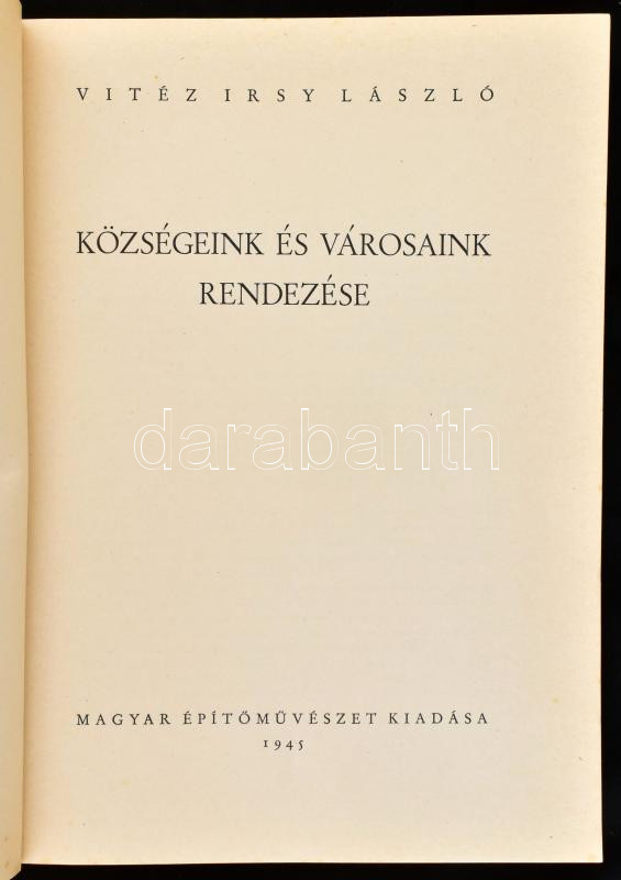 vitéz Irsy László: Községeink és városaink rendezése. (Bp.), 1945, Magyar Építőművészet (Egyetemi Ny.), 164+(2) p. + LXV t. Fekete-fehér képekkel illusztrált. Kiadói papírkötés, jó állapotban. A szerző által DEDIKÁLT.
