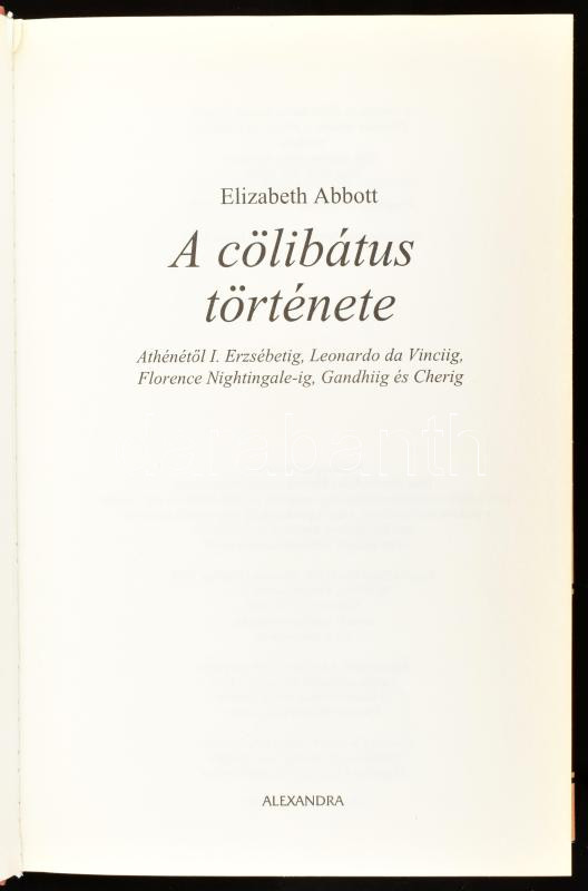 Elizabeth Abbott: A cölibátus története. Ford.: Bakonyi Berta. Pécs, 2... https://www.darabanth.com/de/444-Fernauktion/444.0/Bucher/Bucher-Geschichte~1500012/Elizabeth-Abbott-A-colibatus-tortenete-Ford-Bakonyi-Berta-Pecs-2009-Alexandra-Kiadoi-k~II2911748