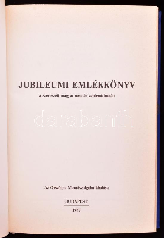 Jubileumi emlékkönyv a szervezett magyar mentés centenáriumán. Szerk.: Dr. Cselkó László. Bp., 1987, Országos Mentőszolgálat. Fekete-fehér fotókkal illusztrálva. Kiadói nyl-kötés, a borítón kis sérüléssel. Megjelent 1800 példányban.