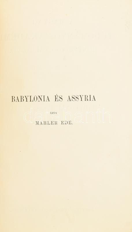 Mahler Ede: Babylonia és Assyria. Bp., 1906., MTA, 1 t.+370 p. Kiadói ... https://www.darabanth.com/de/444-Fernauktion/444.0/Bucher/Bucher-Geschichte~1500012/Mahler-Ede-Babylonia-es-Assyria-Bp-1906-MTA-1-tplus370-p-Kiadoi-aranyozott-egeszvaszon-ko~II2929353