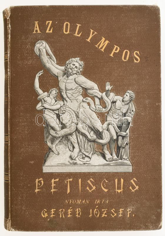 Petiscus, [August Heinrich]: Az Olympos. Görög-római mythologia. Függelékül a germán népek istentana. Serdültebb fiúk és leányok számára. - - nyomán átdolgozta Dr. Geréb József. Bp., 1893, Athenaeum, 1 (címkép) t. + VII+344 p.+7 t. Egészoldalas képtáblákkal és szövegközti képekkel illusztrált. Első kiadás. Kiadói aranyozott, illusztrált egészvászon-kötés, Gottermayer-kötés, kopott borítóval, foltos lapokkal, névbejegyzéssel.