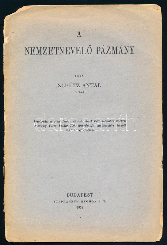 Schütz Antal: A nemzetnevelő Pázmány. Bp., 1938., Stephaneum. Kiadói p... https://www.darabanth.com/de/444-Fernauktion/444.0/Bucher/Bucher-Geschichte~1500012/Schutz-Antal-A-nemzetnevelo-Pazmany-Bp-1938-Stephaneum-Kiadoi-papirkotes-serult-a~II2931705