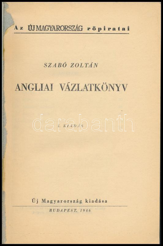 Szabó Zoltán: Angliai vázlatkönyv. Az Új Magyarország röpiratai. Bp., ... https://www.darabanth.com/de/444-Fernauktion/444.0/Bucher/Bucher-Geschichte~1500012/Szabo-Zoltan-Angliai-vazlatkonyv-Az-Uj-Magyarorszag-ropiratai-Bp-1946-Uj-Magyarorszag~II2927287