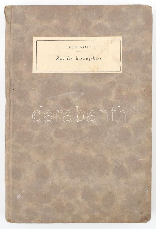 Cecil Roth: Zsidó középkor. Javne Könyvek 11. Bp.,[1943.], Magyar Zsidók Pro Palesztina Szövetsége, 163 p. Kiadói kartonált papírkötés, a gerincen kis sérüléssel, a borítón kis kopásnyomokkal.