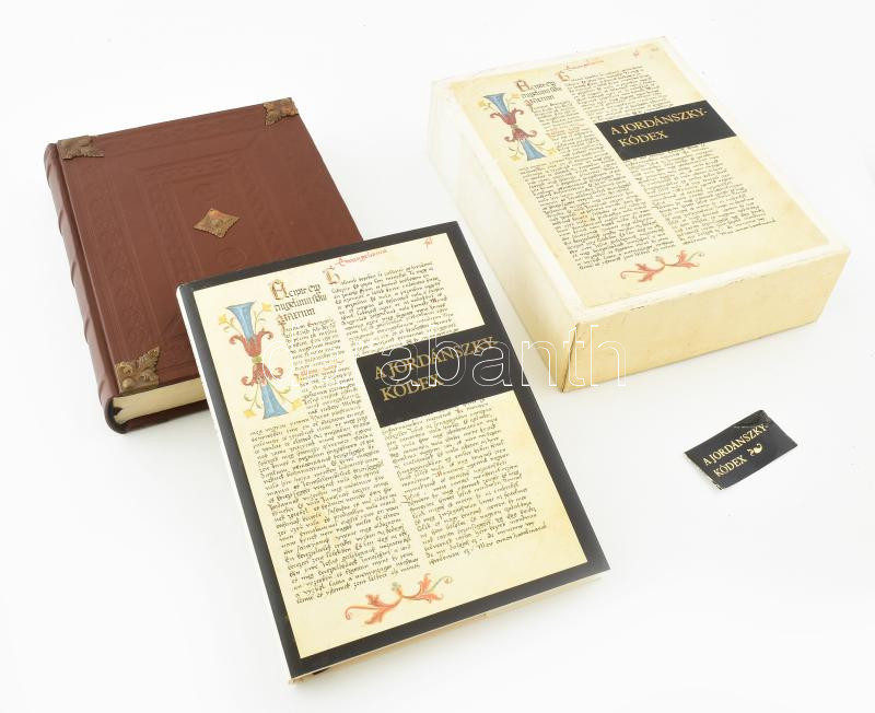 Jordánszky-kódex. A Jordánszky-kódex, magyar nyelvű bibliafordítás a XVI. század elejéről. [1516-1519.] Az Esztergomi Főszékesegyházi Könyvtárban őrzött MSS. II. 1. jelzetű kódex szövegének olvasata. Hasonmás kiadás és tanulmánykötet, két kísérőfüzettel. Csapodi Csaba: A Jordánszky-kódex. Utószó és szómagyarázatok a Jordánszky-kódex olvasatához. Bp., 1984 Helikon. Kiadói bordázott gerincű egészműbőr-kötés, fém kapcsokkal és veretekkel, és kiadói kartonált papírkötés, kiadói papír védőborítóban, kiadói kartontokban, jó állapotban.