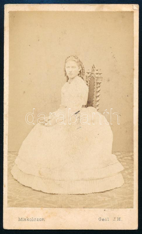 1867 Úrihölgy portréja, keményhátú fotó Geil József miskolci műtermébő... https://www.darabanth.com/de/444-Fernauktion/444.0/Fotografie/Foto~500025/1867-Uriholgy-portreja-kemenyhatu-foto-Geil-Jozsef-miskolci-mutermebol-10-5C3976-5-cm~II2928625