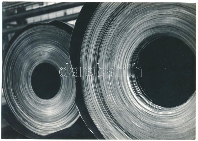 1970 Árvai Zoltán ,,Acéltekercsek" című, feliratozott, vintage fotóművészeti alkotása, ezüst zselatinos fotópapíron, a felvétel Dunaújvárosban készült, a Népművelési Intézet központi fotós alkotótelepén, 16,7x23,2 cm