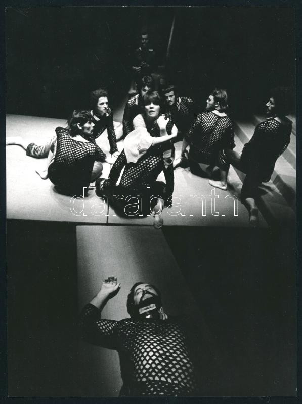 1975 Korniss Péter (1937- ): A 25. Színház előadásán (bemutatva a Magyarország ma c. fotókiállításon a Magyar Munkásmozgalmi Múzeumban, 1975-ben). Fotó, a hátoldalon feliratozva, 23x17 cm