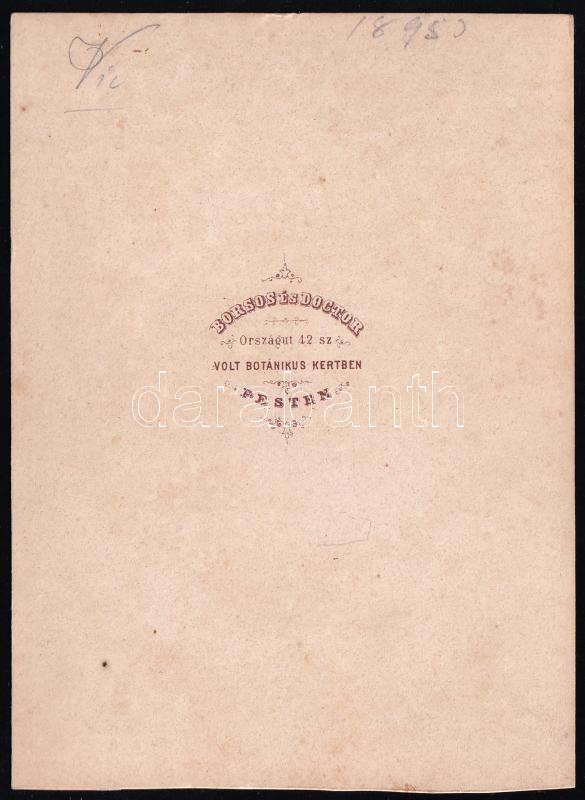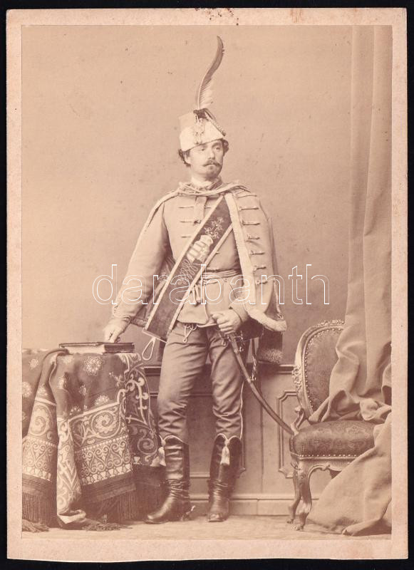 cca 1867 Ismeretlen férfi portréja, talán pont a koronázás idejéből, a keresztövön nemzeti kiscímeres, koronás díszítéssel, jurátus szablyával, keményhátú portréfotó Borsos és Doctor pesti műterméből, 15x11 cm