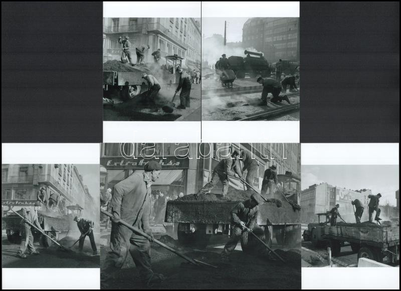 cca 1978 Budapest, útjavítók az Astoriánál, Magyar Alfréd budapesti fotóművész felvételei, 5 db modern nagyítás eredeti negatívokról, jelzés nélkül, 15x21 cm és 15x10 cm