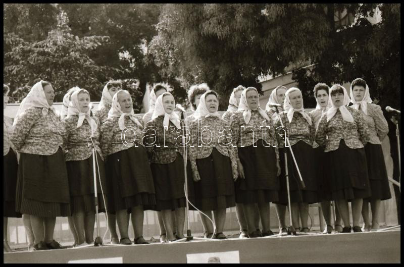 Beschreibung: cca 1985 Kecskemét, Vincze János (1922-1999) kecskeméti fotóművész hagyatékából 48 db vintage NEGATÍV a népzenei találkozóról, 24x36 mm