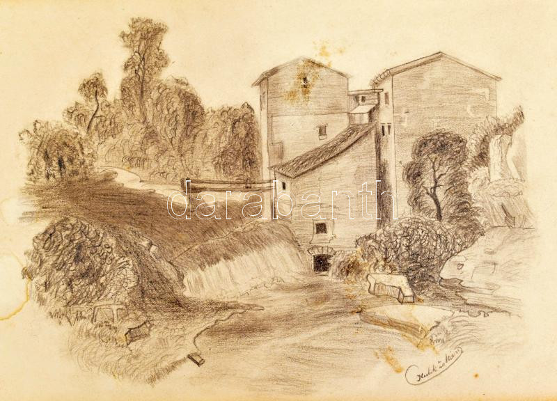 19. sz. vége, Keleti Zoltán: Malom. Ceruza, papír, foltos, jelzéssel, ... https://www.darabanth.com/de/444-Fernauktion/444.0/Gemalde-und-Grafiken/Gemalde-und-Grafiken~500001/19-sz-vege-Keleti-Zoltan-Malom-Ceruza-papir-foltos-jelzessel-35x24-cm~II2926907