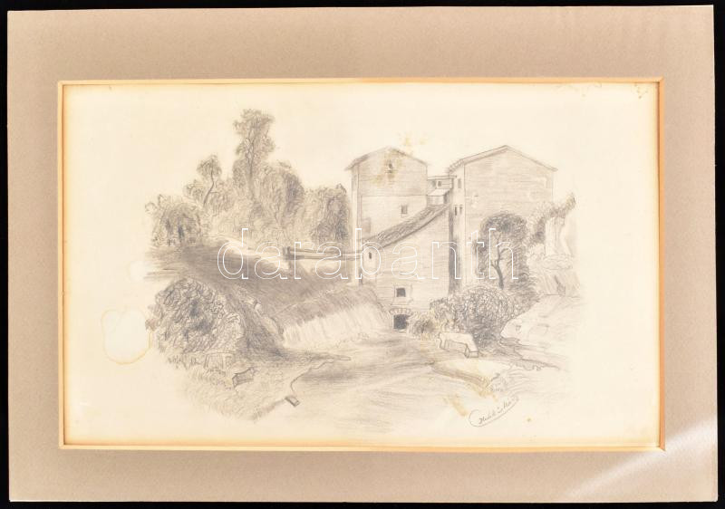 Beschreibung: 19. sz. vége, Keleti Zoltán: Malom. Ceruza, papír, foltos, jelzéssel, 35x24 cm