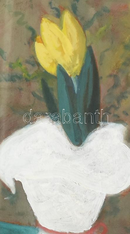 Beschreibung: Gábor Móric (1889-1987): Csendélet. Olaj, farost, jelzett, hátoldalán Képcsarnok Vállalat címkéjével, üvegezett fakeretben, 49x40 cm.