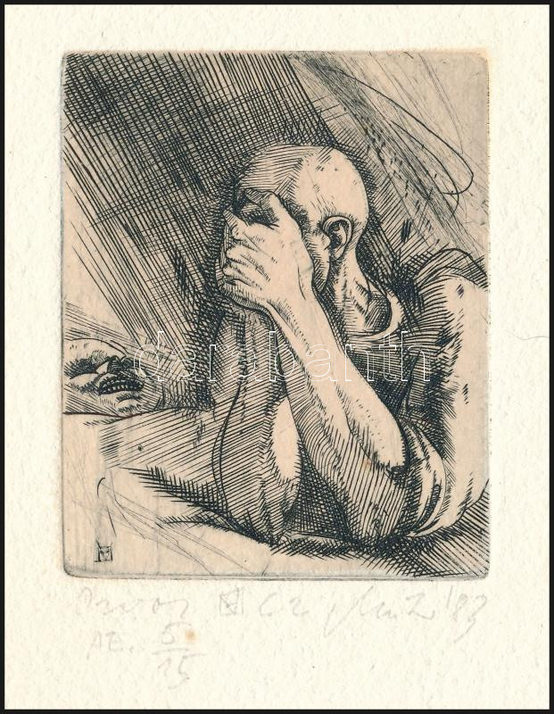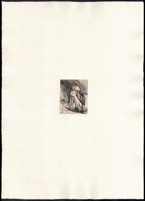 Müller Árpád (1961-2006): Orvos, 1983. Rézmetszet, merített papír, jelzett, művészpéldány AE V/XV. számozással. Lapon néhány kevés apró folttal. 7×5,5 cm.