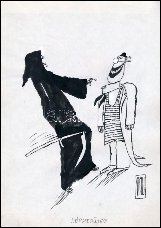 Rau Tibor (1934-2000): Népszerűség (karikatúra). Tus,, papír. Jelzett.... https://www.darabanth.com/de/444-Fernauktion/444.0/Gemalde-und-Grafiken/Gemalde-und-Grafiken~500001/Rau-Tibor-1934-2000-Nepszeruseg-karikatura-Tus-papir-Jelzett-Hartyapapiron-szines-~II2891030