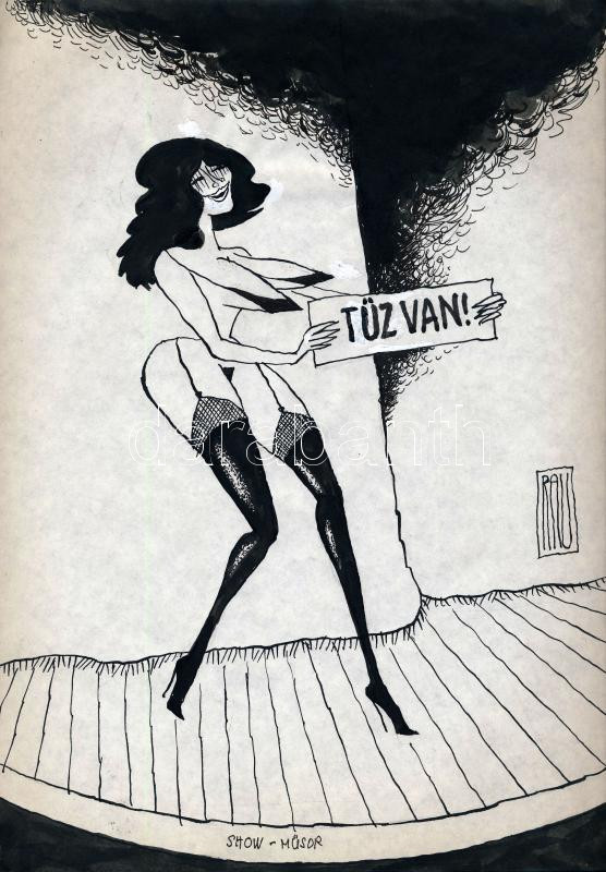 Rau Tibor (1934-2000): Tűz van! Show-műsor. (erotikus karikatúra). Tus... https://www.darabanth.com/de/444-Fernauktion/444.0/Gemalde-und-Grafiken/Gemalde-und-Grafiken~500001/Rau-Tibor-1934-2000-Tuz-van-Show-musor-erotikus-karikatura-Tus-papir-Jelzett-30x21-cm~II2891039