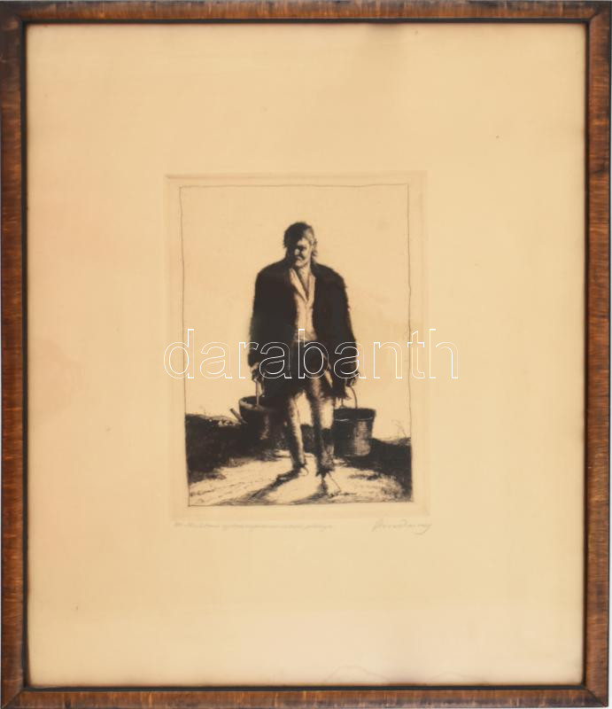 Beschreibung: Rudnay Gyula (1878-1957): Vízhordó. rézkarc, papír, jelzett, 23×15 cm Névre szóló dedikálással Flesch Ármin egyetemi magántarának