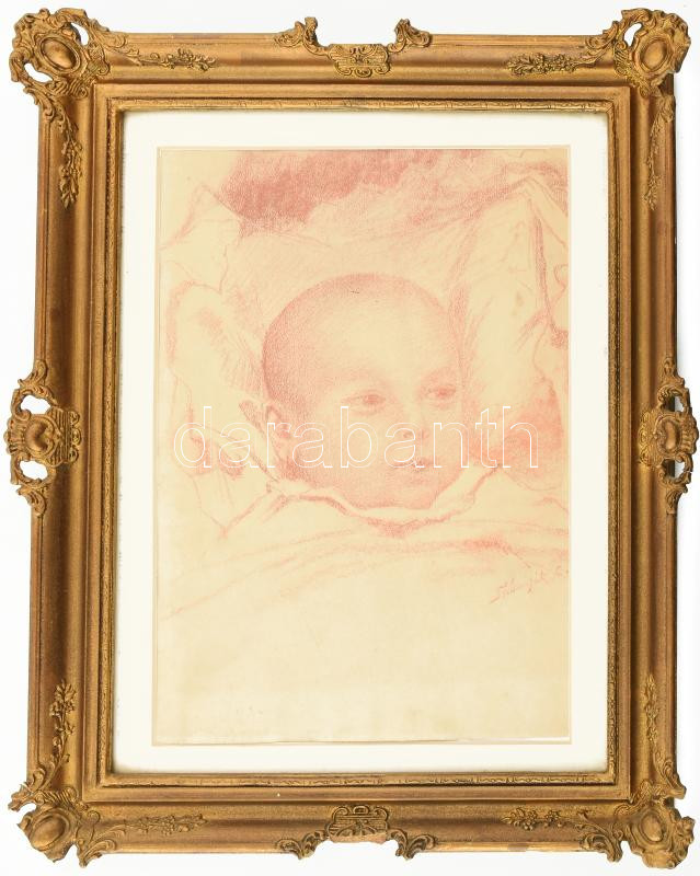 Spányik Kornél (1858-1943): Kisbaconi Benedek Márta portréja. Kréta, papír, kissé foltos, jelzett, sérült keretben. Az ábrázolt csecsemő Spányik Kornél rokonságához tartozott és 1923-ban született, így feltételezhető, hogy a mű abban az évben vagy 1924-ben készült. 35×24 cm