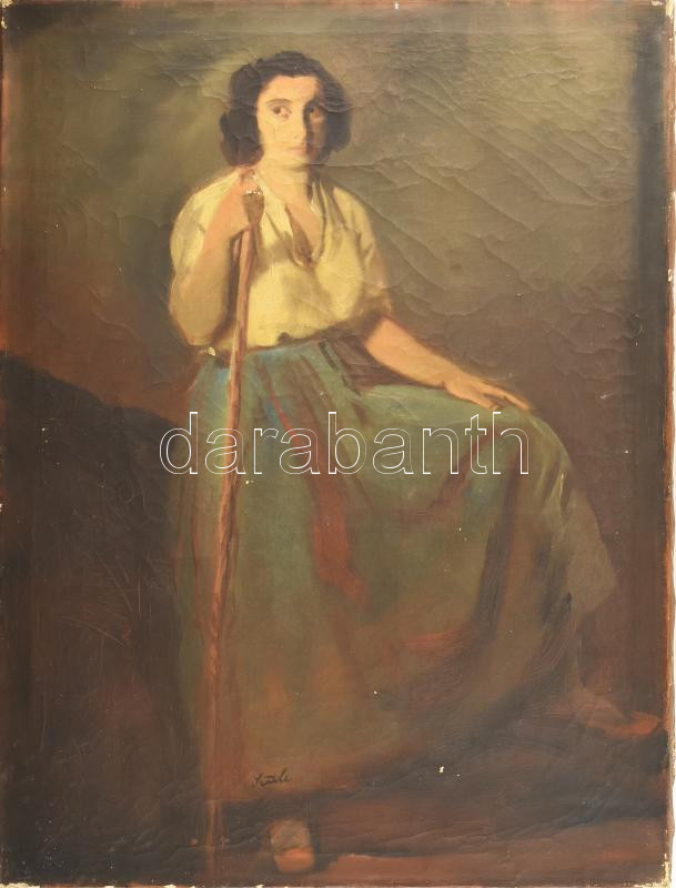 Beschreibung: Szüle Péter (1886-1944): Hölgy portréja. Olaj, vászon, jelezve középen lent. Kissé sérült. 80×60 cm.