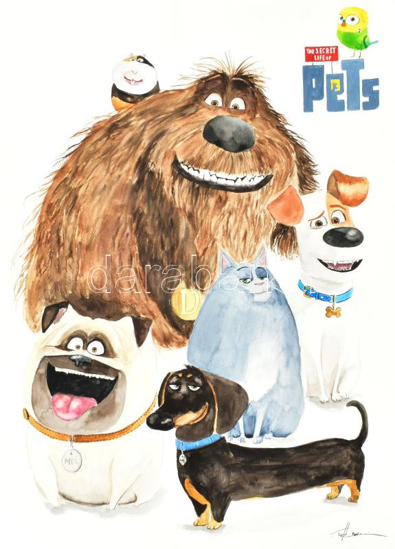 Beschreibung: Tieff Bettina (-): A kis kedvencek titkos élete (The Secret Life of Pets). Akvarell, papír, jelzett, 70x50 cm