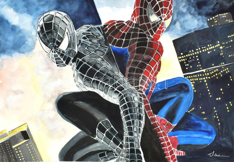 Beschreibung: Tieff Bettina (-): Pókember. Akvarell, papír, jelzett, 50x70 cm