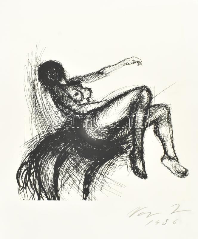 Beschreibung: Varga Imre (1923-2016): Fekvői akt. Szitanyomat, papír, jelzett. Közepén kissé hullámos. 51x36 cm