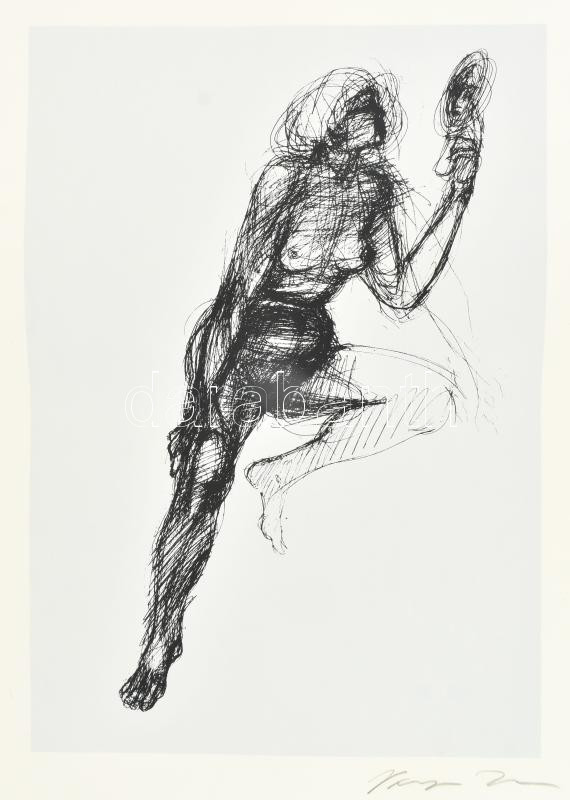 Beschreibung: Varga Imre (1923-2016): Női akt. Szitanyomat, papír, jelzett. Lapszéli apró szakadással. Közepén kissé hullámos. 51x36 cm