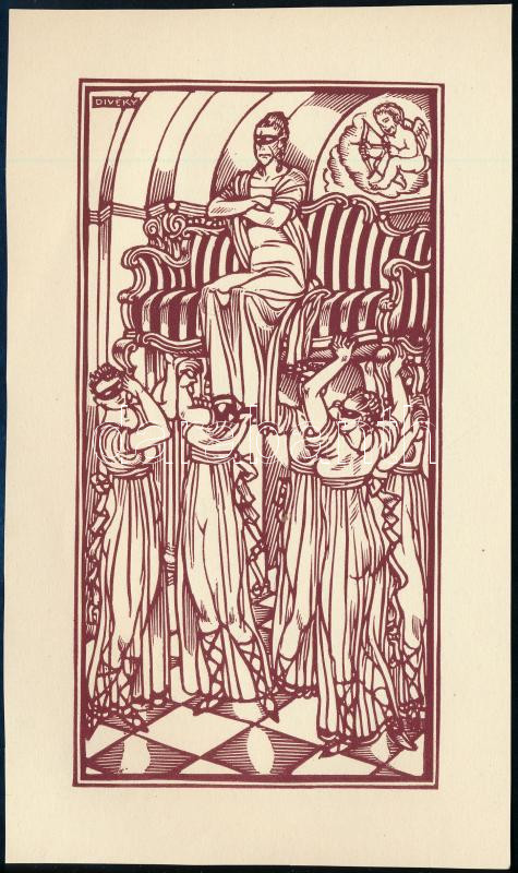 cca 1930 Divéky József (1887-1951): Dámák diadala. Fametszet, papír, j... https://www.darabanth.com/de/444-Fernauktion/444.0/Gemalde-und-Grafiken/Stich~500005/cca-1930-Diveky-Jozsef-1887-1951-Damak-diadala-Fametszet-papir-jelzett-16-5x8-5-cm~II2932899
