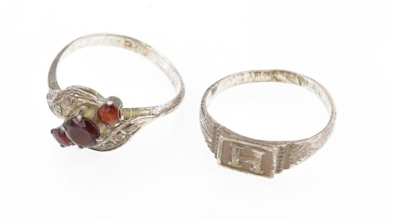 Beschreibung: 2 darab Ezüst (Ag) gyűrű, közte jelzéssel, kő berakással, 50-es méret, bruttó: 3,6 g