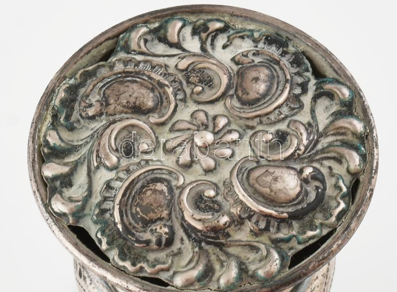 Beschreibung: Asztalközép, kínáló, üveg betét nélkül. ezüst (Ag) Jelzett, dianás jelzéssel, mesterjeggyel. 188 g 19 cm