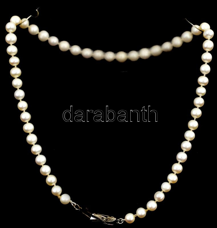 Édesvízi gyöngysor ezüst (Ag) kapoccsal, d: cca 7 mm, h: 44 cm https://www.darabanth.com/de/444-Fernauktion/444.0/Juwellen-und-Kunstobjekte-aus-Edelmetall/Juwellen-und-Kunstobjekte-aus-Edelmetall~1500028/Edesvizi-gyongysor-ezust-Ag-kapoccsal-d-cca-7-mm-h-44-cm~II2913866