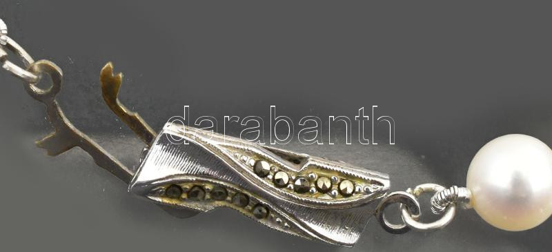 Beschreibung: Édesvízi gyöngysor ezüst (Ag) kapoccsal, d: cca 7 mm, h: 44 cm