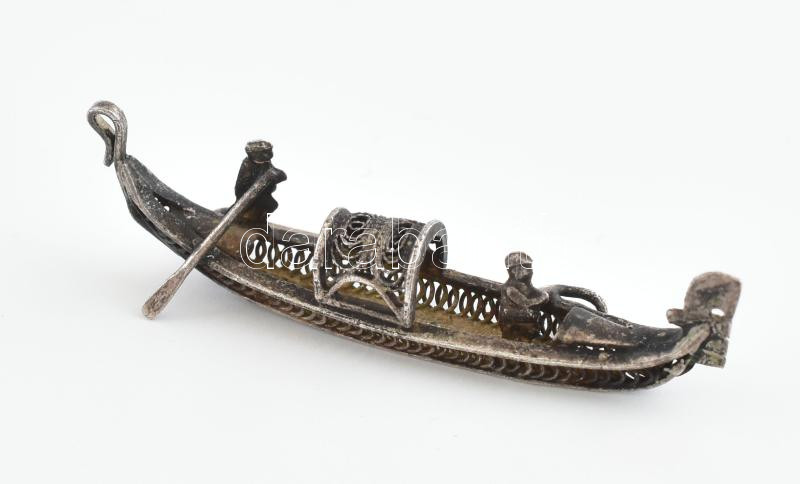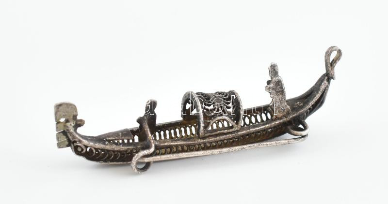 Beschreibung: Ezüst (Ag) filigrán hajó bross, jelzés nélkül, nettó: 3,06 g, 4,5 cm