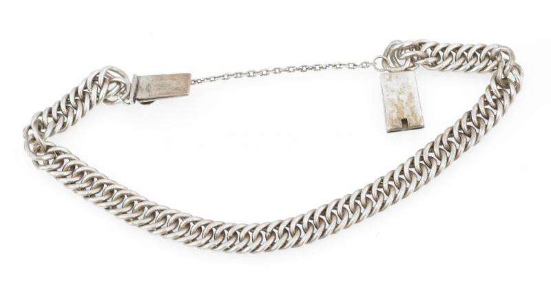 Ezüst (Ag) gyermek karlánc, jelzés nélkül, 18 cm, nettó: 10 g https://www.darabanth.com/de/444-Fernauktion/444.0/Juwellen-und-Kunstobjekte-aus-Edelmetall/Juwellen-und-Kunstobjekte-aus-Edelmetall~1500028/Ezust-Ag-gyermek-karlanc-jelzes-nelkul-18-cm-netto-10-g~II2929548