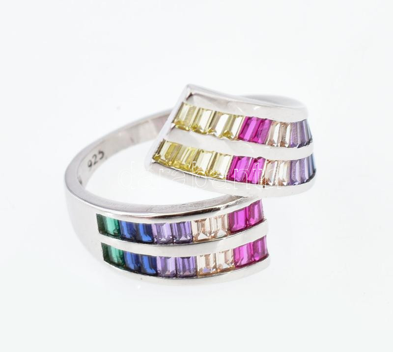 Beschreibung: Ezüst (Ag) gyűrű színes kövekkel, jelzett, méret: 57, bruttó: 3,79 g