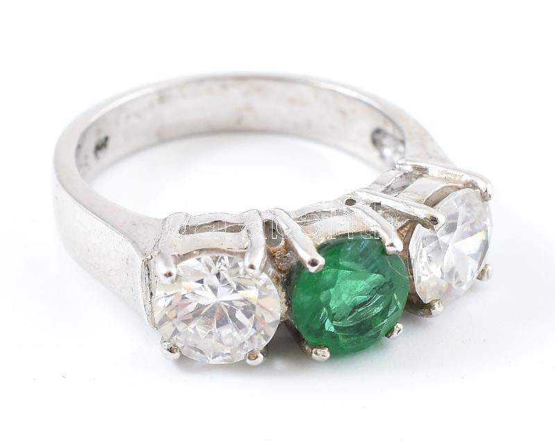 Beschreibung: Ezüst (Ag) gyűrű zöld és fehér kövekkel. Jelzett, bruttó: 4,3 g, m: 51