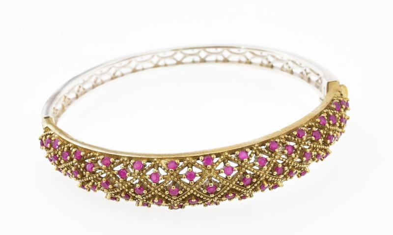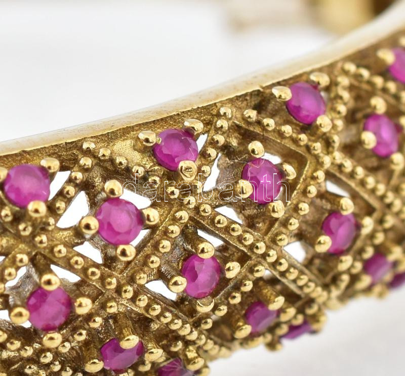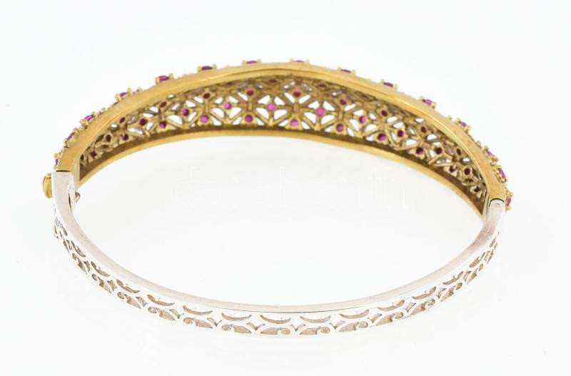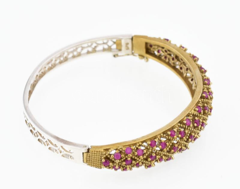 Ezüst (Ag) karkötő szintetikus rubinokkal, jelzett, 5×6 cm, bruttó: 18... https://www.darabanth.com/de/444-Fernauktion/444.0/Juwellen-und-Kunstobjekte-aus-Edelmetall/Juwellen-und-Kunstobjekte-aus-Edelmetall~1500028/Ezust-Ag-karkoto-szintetikus-rubinokkal-jelzett-5C3976-cm-brutto-18-6-g~II2914060