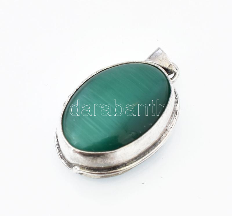 Beschreibung: Ezüst (Ag) medál zöld kővel, jelzett, h: 2 cm, bruttó. 4,7 g