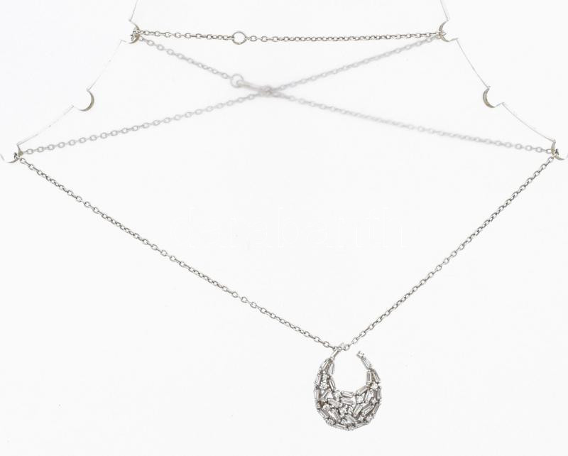 Beschreibung: Ezüst (Ag) nyaklánc ovális köves medállal, jelzett, h: 44 cm, bruttó: 3,5 g