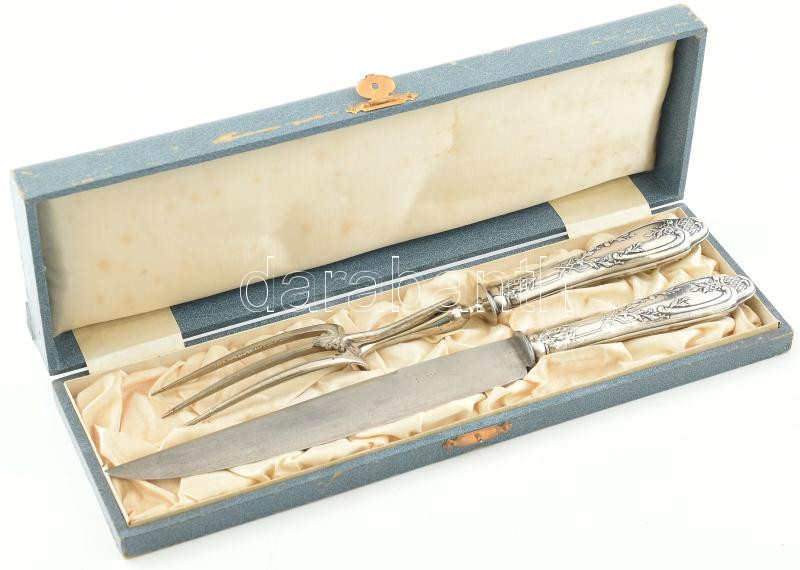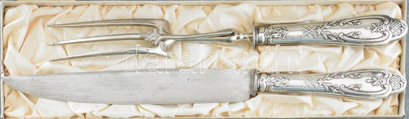 Beschreibung: Ezüst (Ag) nyelű antik francia hús szervírozó készlet, jelzéssel, díszdobozban, h: 27-31 cm, bruttó: 210 g